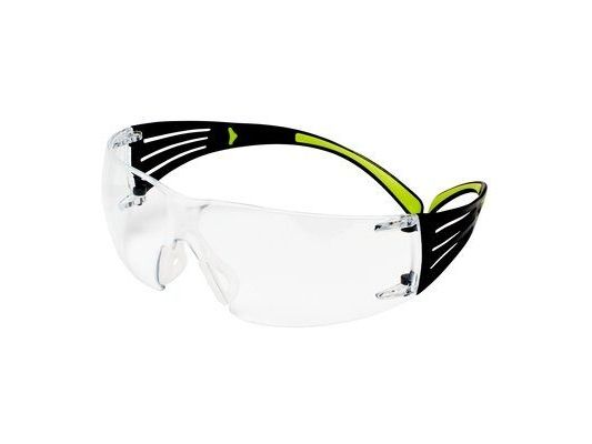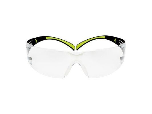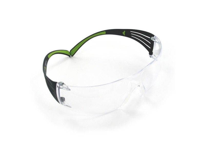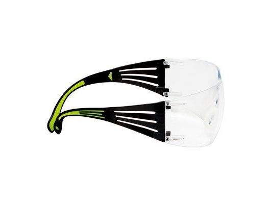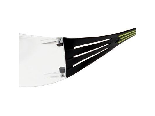 For wraparound eye protection and comfort, use 3M™ SecureFit™ 400 Safety Eyewear.Our clear, lightweight safety glasses weigh just 19 g and feature padded temple touchpoints above the ears, and soft adjustable nose pads for a close and comfortable, personal fit. The wraparound design helps to give the user a wide field of vision and the bold neon green temple arms make them easily identifiable.These glasses are unisex, designed to help protect eyes with 99.9 % UV radiation resistance, and are compatible with 3M’s range of Hearing Protection and Respirators.Tested and approved to comply with European Standards - CE marked (EN 166:2001 1 FT), a pack contains one pair of safety glasses.