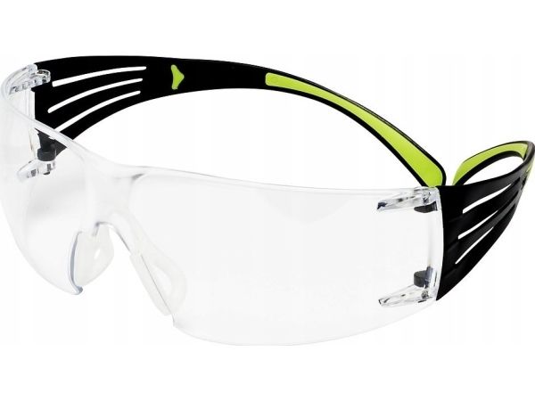 3M SecureFit 400 Safety Eyewear are our wraparound safety glasses with a clear, strong polycarbonate anti-scratch lens. They feature padded temple touchpoints above the ears and soft adjustable nose pads to ensure a comfortable fit. The lightweight design weighs just 19 g and features bold neon green temple arms to help the glasses stand out.