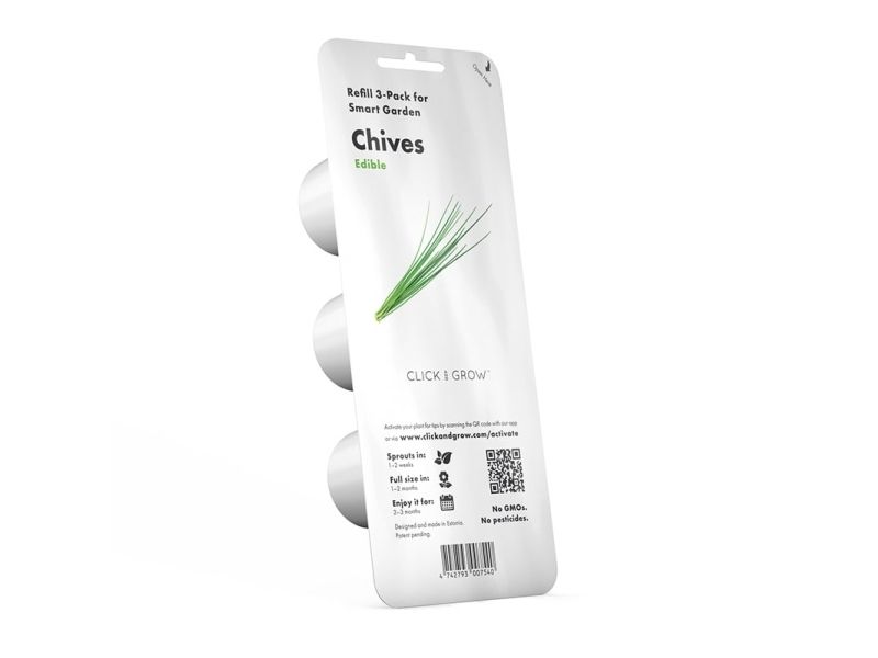 Enjoy fresh flavorful chives at your fingertips. These easy-to-use plant capsules make it simple to grow a kitchen-favorite herb right in your Click and Grow Smart Garden?perfect for elevating everyday meals with a burst of green onion-like goodness.Refill 3-pack Plant Capsules for your Click and Grow Smart GardenGrow fresh chives at home with ease year-roundIdeal for soups salads sandwiches and moreRequires a Click and Grow Smart Garden Starter KitA timeless favorite in European cuisines from French to SwedishRefill 3-pack Plant Capsules for your Click and Grow Smart Garden Keep your Smart Garden thriving with convenient chives refills. Each capsule is pre-seeded and ready to drop into your garden so you can replace harvested plants and keep the flavor coming without hassle. Grow fresh chives at home with ease year-round Enjoy reliable effortless growing indoors. The capsules are designed to work seamlessly with the Click and Grow system giving you fresh herbs regardless of the season. Ideal for soups salads sandwiches and more Chives bring a light onion-like flavor that lifts countless dishes. Sprinkle freshly cut chives over soups toss them into salads or finish sandwiches and snacks with a vibrant aromatic touch. Requires a Click and Grow Smart Garden Starter Kit These capsules are made specifically for the Click and Grow Smart Garden. Simply insert them into your device and let the system handle the rest. A timeless favorite in European cuisines from French to Swedish Chives have a rich culinary history in Europe and remain a staple in classic and modern recipes alike. Add authentic fresh-picked flavor to your home cooking. Package includes3 chives plant capsulesProduct specificationsBrand: Click and GrowProduct name: Smart Garden Refill 3-pack Chives for easy growing of fresh herbs at homeCapsule type: ChivesQuantity per pack: 3 plant capsulesCompatibility: Click and Grow Smart Garden Starter Kit required
