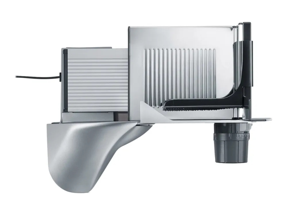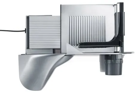 The SKS 500 all-purpose slicer has been developed especially for everyday family life. This is equally about speed and of course safety. The extensive collection of recipes proves that this all-purpose slicer is a full-fledged food processor that can hardly rest all day. And in addition, with the good feeling of saving resources. The reason being that bread, cheese and sausage stay fresh longer and last longer when in one piece. By setting the carriage to a higher position, it is possible to cut directly into high casseroles and bowls or in the storage box for the refrigerator, which is part of the standard equipment of SKS 500. A kitchen helper who knows how things work in the kitchen. The extra-wide slicing thickness setting for breakfast buns is a real help.