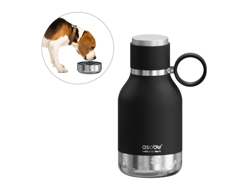 Asobu - dog bowl - stainless steel bottle with dog bowl 1 liter, black