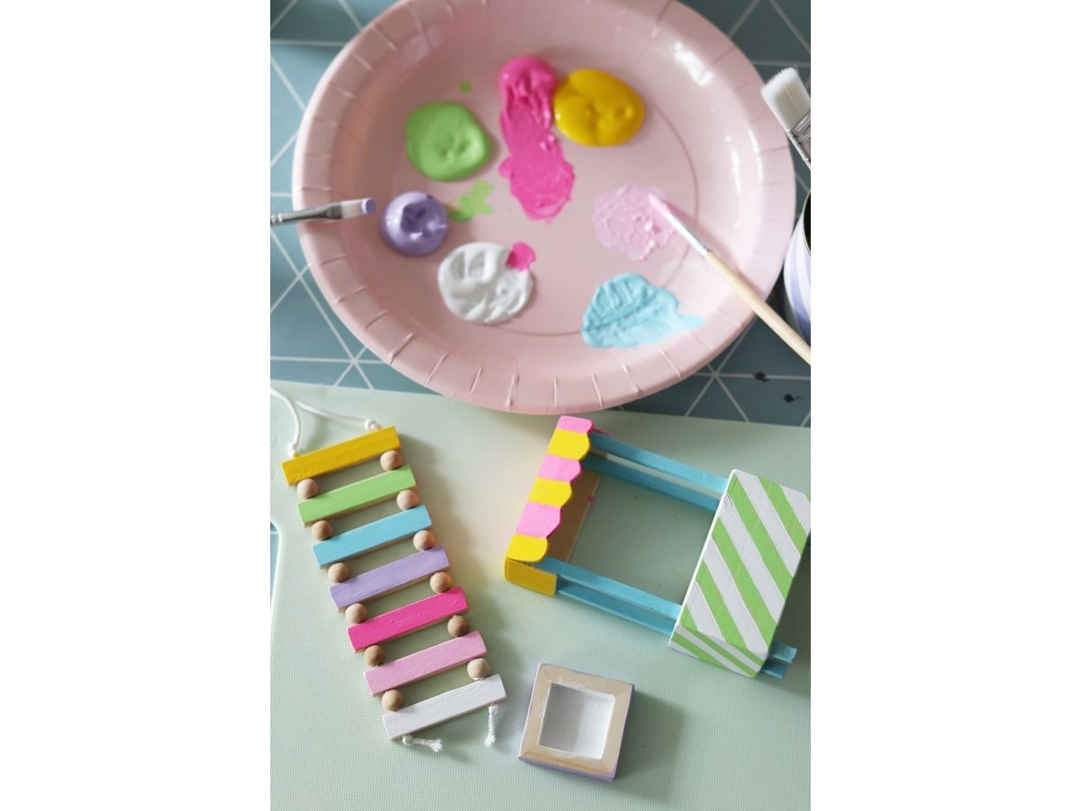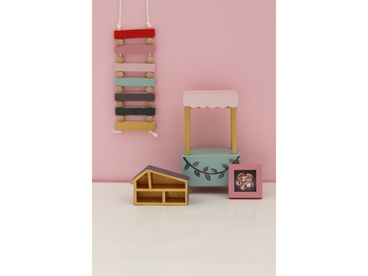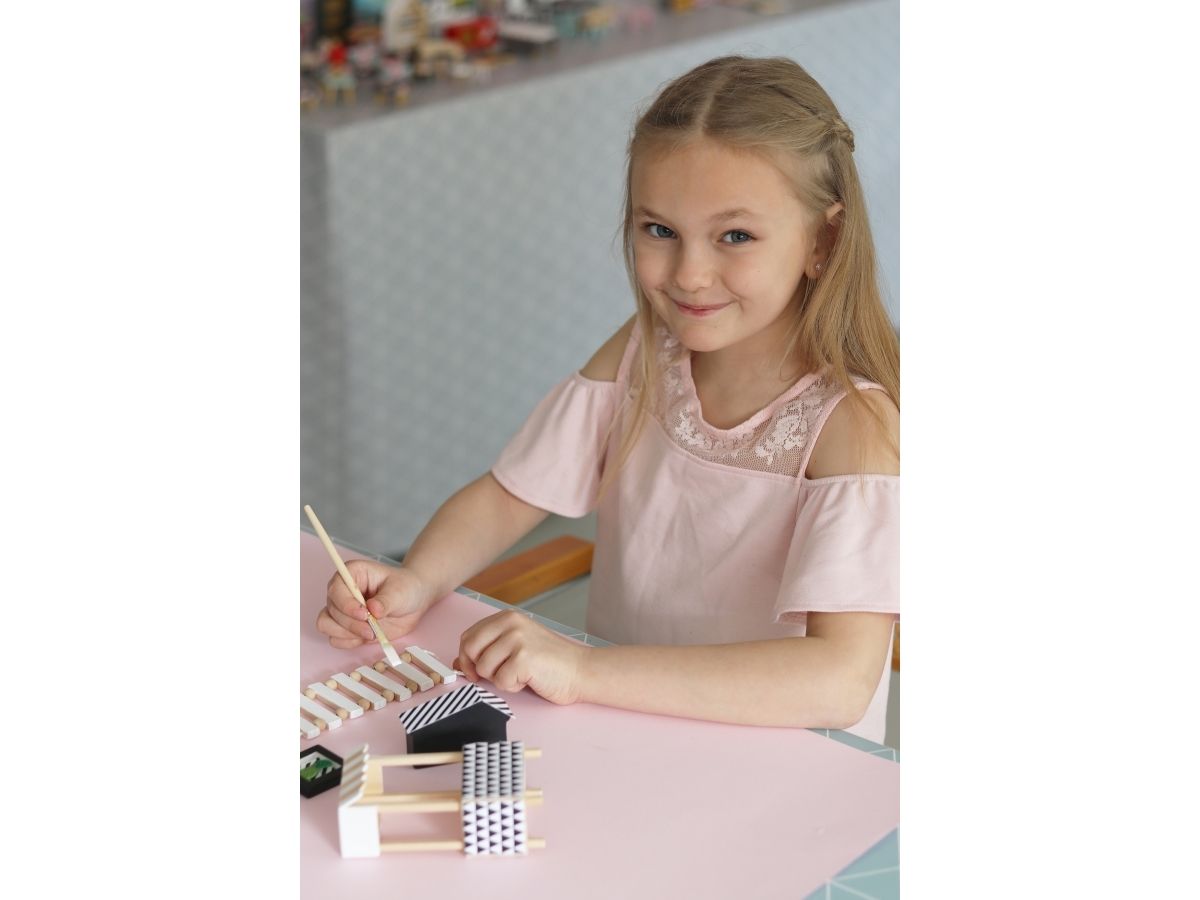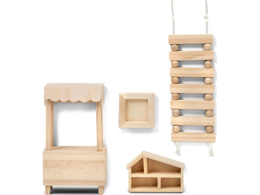 Do you like designing rooms and moving things around? Let the creativity flow with this Do-It-Yourself set with toys that match your Lundby dollshouse. All the items are made of untreated wood, and the set includes a rope ladder, a kiosk, a picture frame and a miniature of a Lundby dollshouse. After all, the family living in your dollshouse should have a dollshouse of their own! Define your own style by painting, wallpapering or gluing on pieces of fabric – the sky’s the limit! And don’t miss the other fun DIY sets for various rooms in your dollshouse, either.