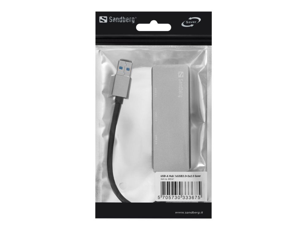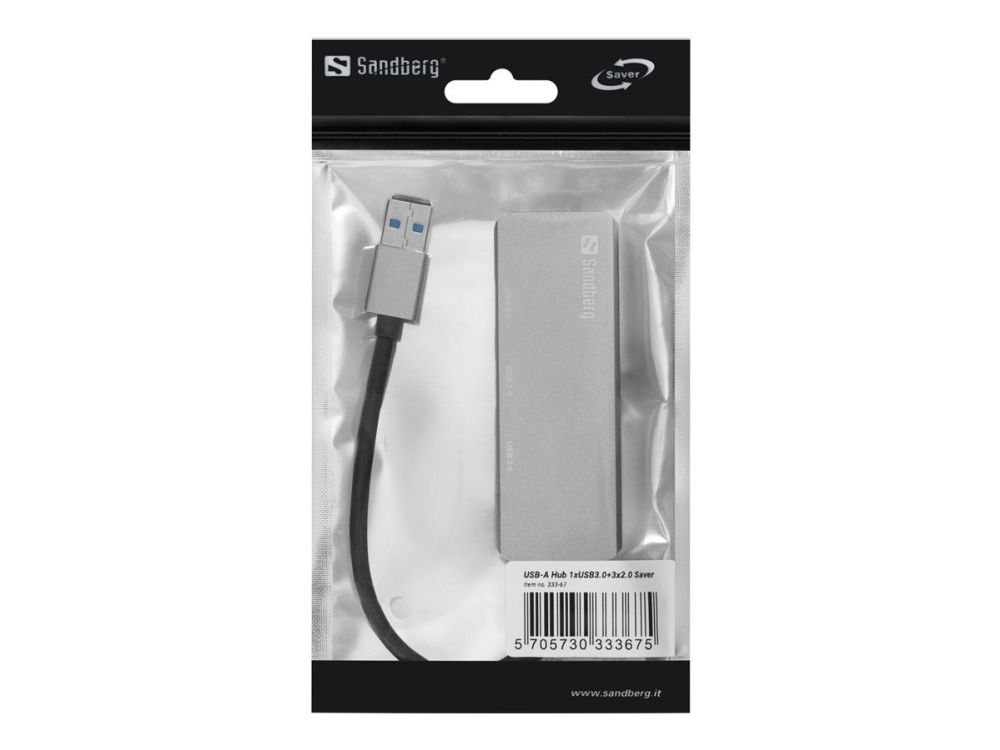 The Sandberg USB-A Hub 1xUSB3.0+3x2.0 SAVER allows connection of up to 4 USB devices to your computer. Thus, you can for example connect an external hard disk, a printer and a mouse simultaneously. Connect it to a USB port and it will work immediately, without the need to install drivers.