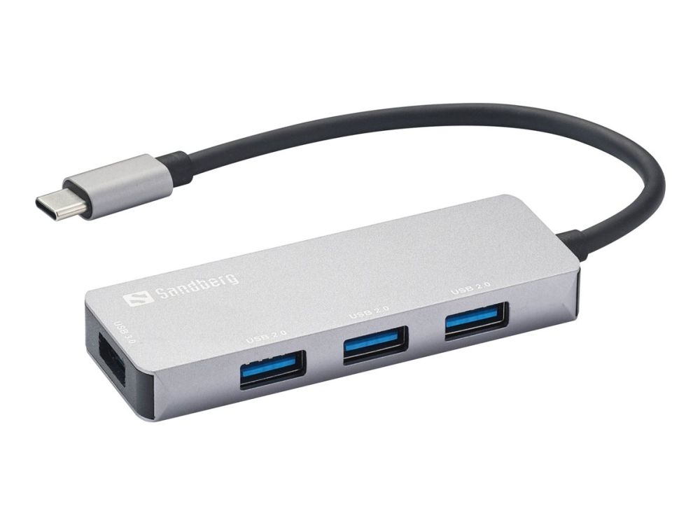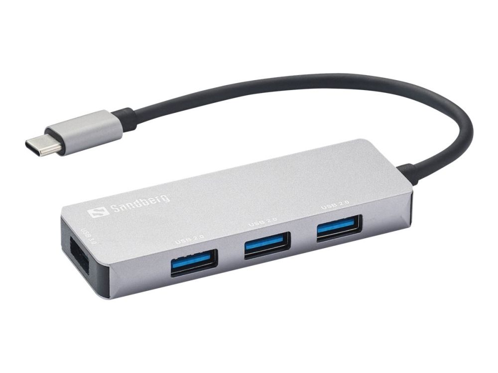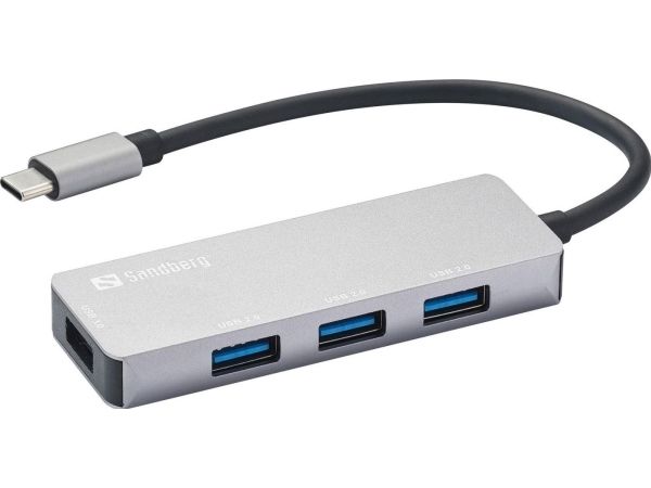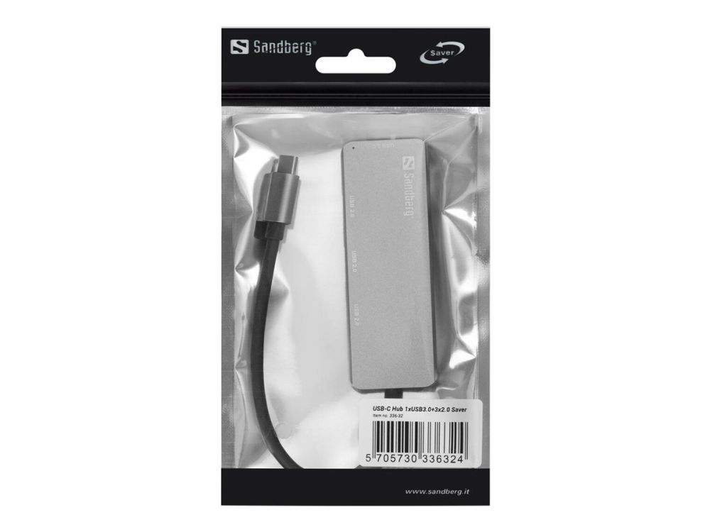 The Sandberg USB-C Hub 1 x USB3.0 + 3 x 2.0 SAVER allows connection of up to 4 USB devices to your device with USB-C port. Thus, you can for example connect an external hard disk, a printer and a mouse simultaneously.