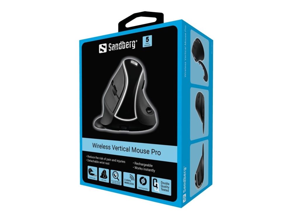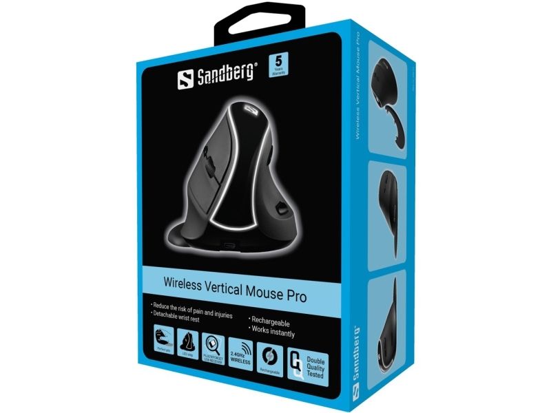 The Sandberg Wireless Vertical Mouse Pro is an ergonomic alternative to a traditional computer mouse. The mouse is, so to speak, overturned on the side and the shape adapted to the grip of your hand, so that you get a more natural grip of the mouse. This alleviates the pressure on your wrist significantly, and thereby, reducing the risk for pain and joint injuries. Furthermore, this mouse is equipped with a magnetically detachable wrist rest for additional comfort. The mouse is wireless, avoiding the need for an irritating cable. You even avoid changing batteries thanks to the built-in rechargeable battery.