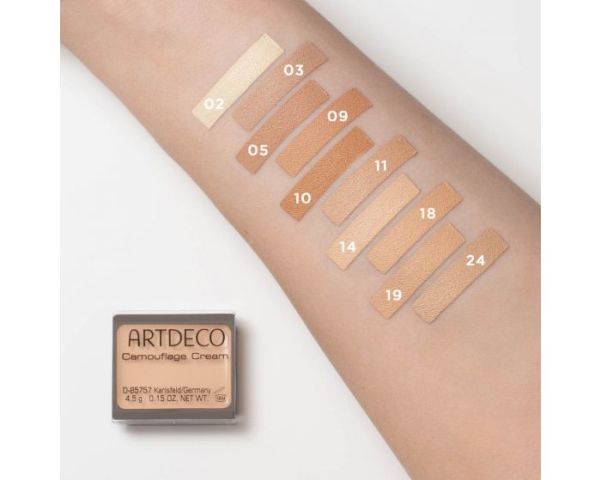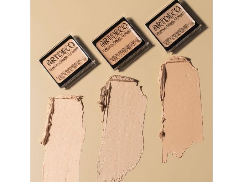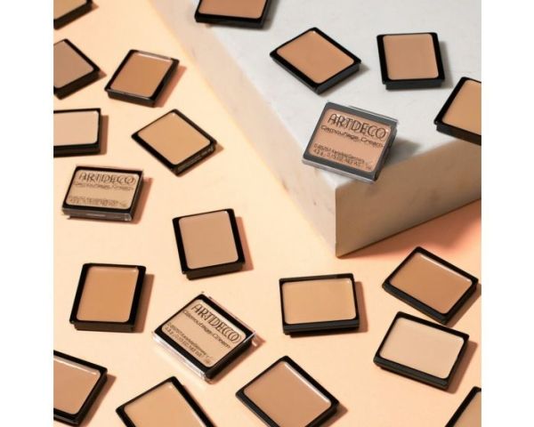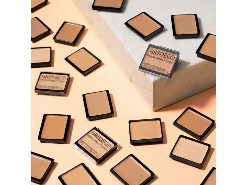 A full-coverage foundation you can count on! The Camouflage Cream is excellent at reliably concealing skin imperfections, which makes it ideal for special occasions. All shades can be mixed together to create a perfect match for your skin tone. The foundation is also very long lasting and stays in place even at high temperatures. It has very full coverage and becomes waterproof after being set with powder. You can achieve light to very full coverage depending on the amount of product applied. The foundation pan and spatula can be stored in the practical magnetic box. This allows you to collect different shades and use them individually to perfect your facial features!