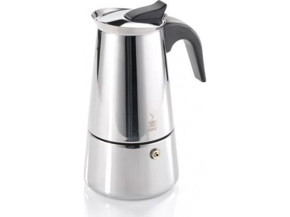 Frisch aufgebrühten Espresso, wie er in den meisten italienischen Familien zubereitet wird, gibt’s mit dem Espressokocher EMILIO aus Edelstahl.