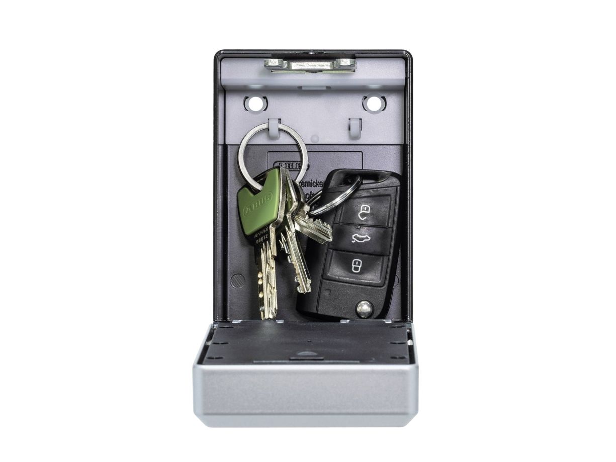 Smart means keeping it simple: Abus KeyGarage 787 Smart-BT can be operated over Bluetooth via an app. KeyGarage 787 Smart-BT for wall mounting is a great option for holding up to 20 keys, three car keys or up to 30 plastic cards on a temporary and flexible basis for various groups of people. As an admin, you can generate a six-digit key code for others in the app, which will give them access to whatever is stored in the smart KeyGarage without the use of a smartphone; e.g. for guests in a holiday rental, workers, cleaning service, mobile care services and more. Another option is to send an electronic access ticket via the app. The Bluetooth -KeyGarage has the current most secure AES-128-Bit encryption. Inside there are two hooks for keys. The batteries can be changed any time without having to open the KeyGarage 787 Smart-BT.