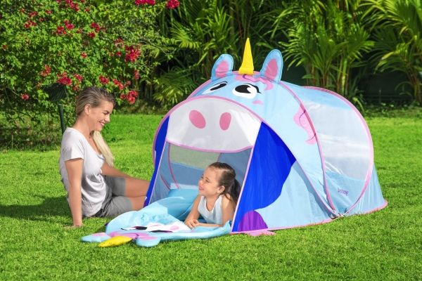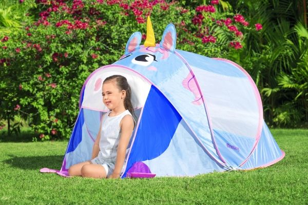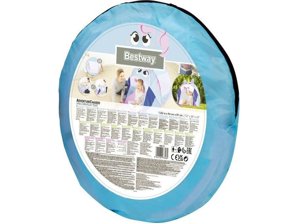 Bestway 72" x 38" x 32"/1.82m x 96cm x 81cm AdventureChasers Unicorn Play Tent, Tent, 2 yr(s), Suitable for outdoor use, Fiberglass, Polyester, Blue, 812 g