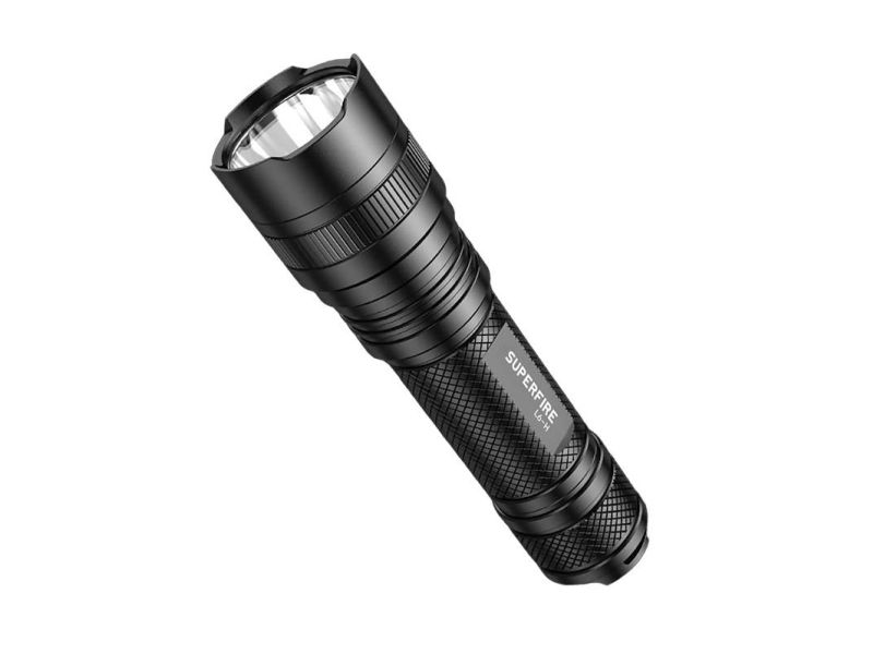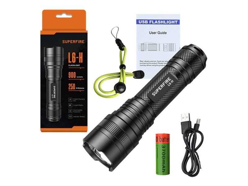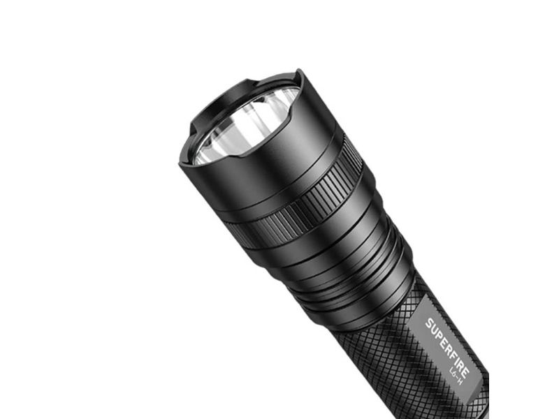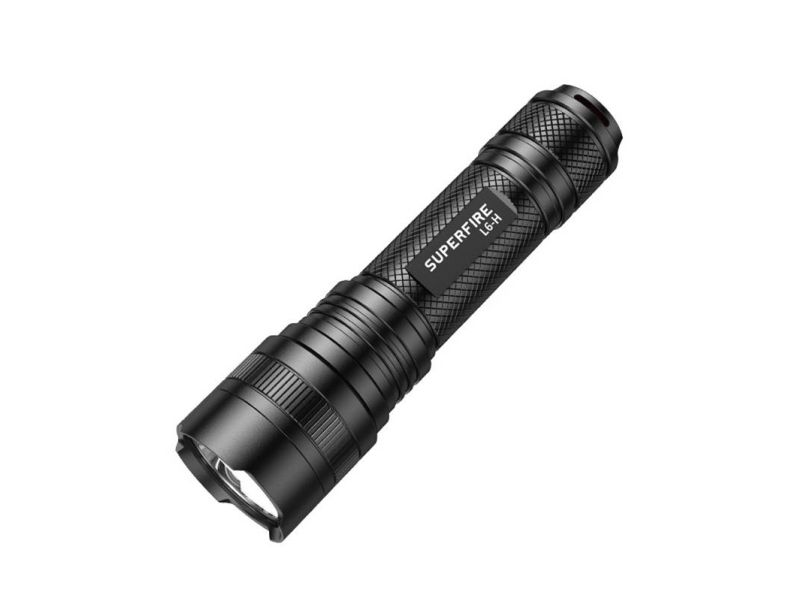 The Superfire L6-H flashlight is distinguished by its high power of 15W, its brightness is 900 lm, and its range is about 250m. The device offers 5 light modes to choose from, making it perfect for various scenarios. It also provides a long operating time, and the IP46 (International Protection Marking, dust and splash resistance class) water resistance allows you to use it in almost any conditions without worry. At the same time, the product is extremely handy, durable and easy to use.