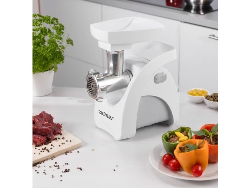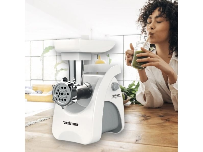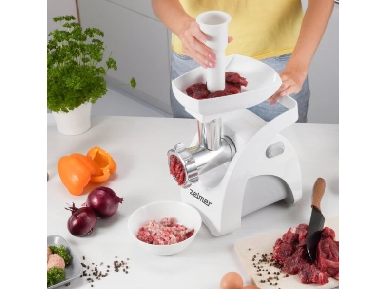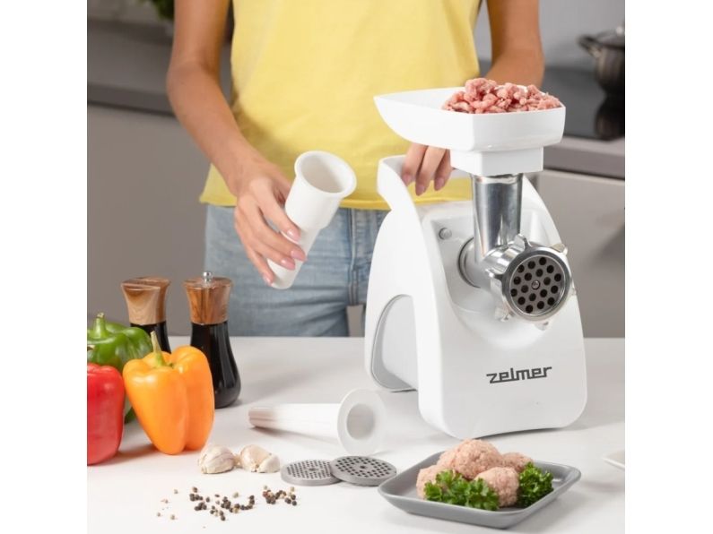 The Zelmer ZMM9801B meat grinder is designed for efficient meat processing at home, combining performance with versatile functionality. With a power consumption of 2.2 kW, this meat grinder has the capacity to handle up to 3 kg of meat per minute, ensuring quick preparation for your favorite recipes. It comes equipped with a variety of attachments, including multiple stainless steel blades and a sausage stuffer, catering to all your grinding and stuffing needs. The robust plastic body offers durability while maintaining a lightweight design, making it easy to maneuver in any kitchen setup. Additional features such as the reverse function enhance versatility, allowing for efficient operation. With non-slip feet, this meat grinder provides stability during use, ensuring safety and convenience when grinding meat at home.