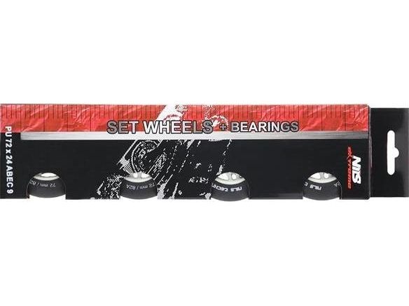 NILS Extreme PU 76x24 82A BLACK MATTE (4 pcs) + ABEC-9 (8 pcs) NILS EXTREME SET