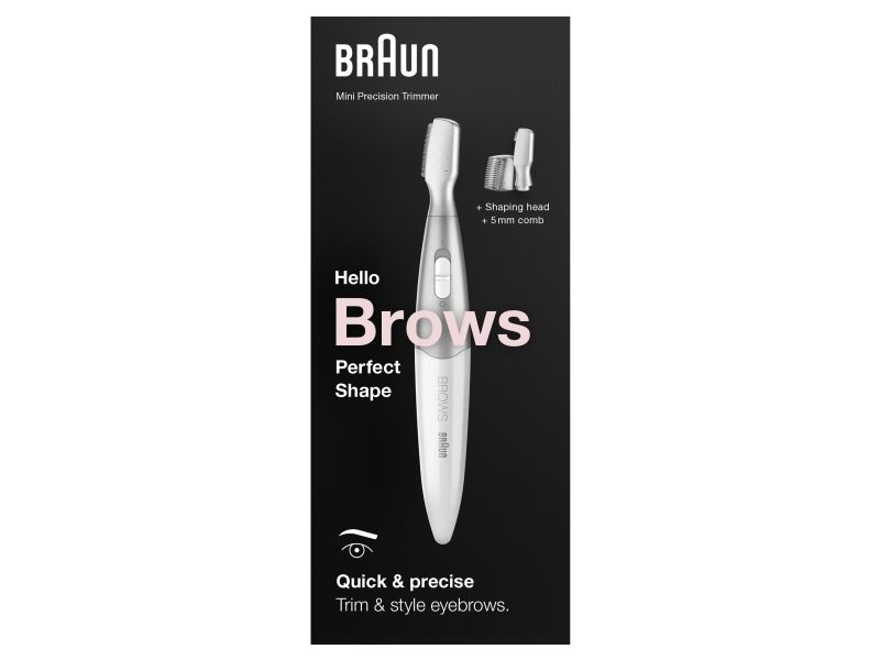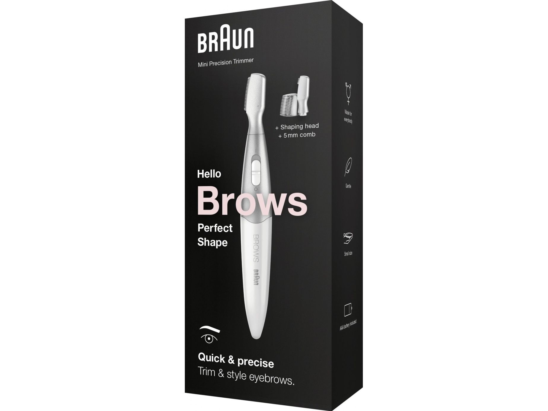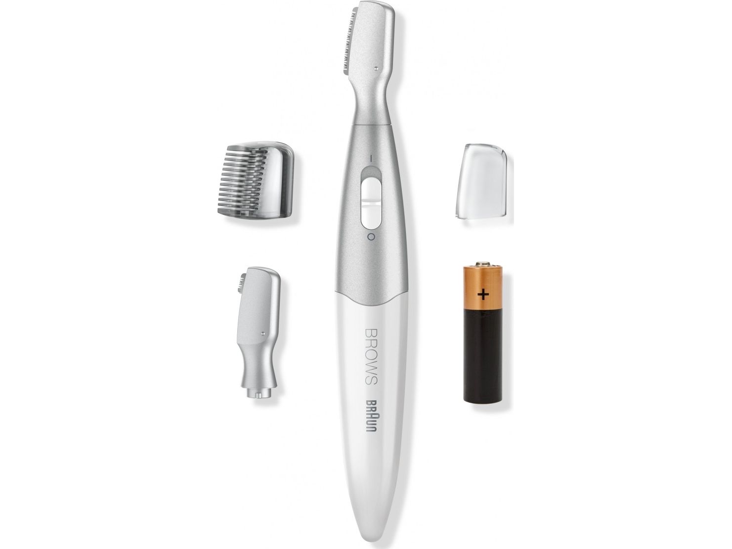 Braun FG1106. Precision trimmer purpose: Eyebrow, Face. Product colour: Silver, Country of origin: China. Power source: Battery, Battery type: AA. Safety warning: Conserver l’appareil au sec. N’utilisez pas l’appareil sur une peau irritée. Cet appareil.... Weight: 70.57 g