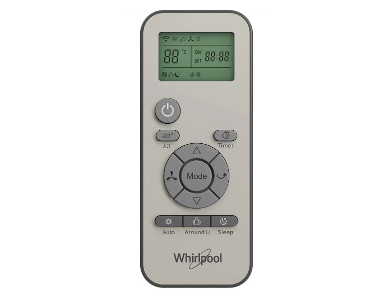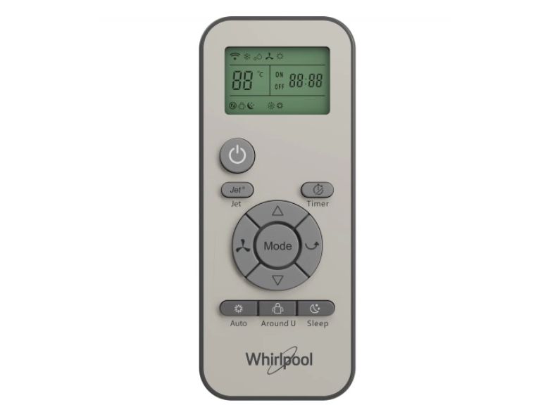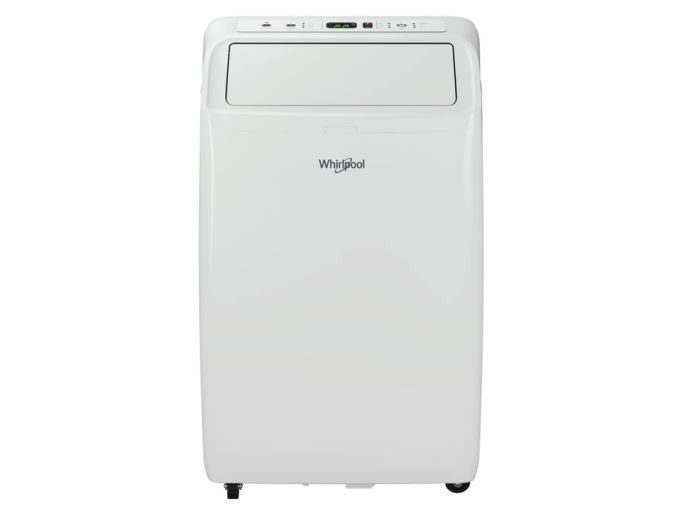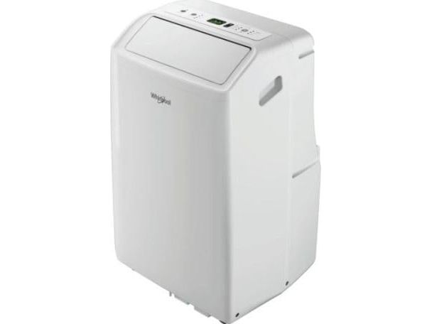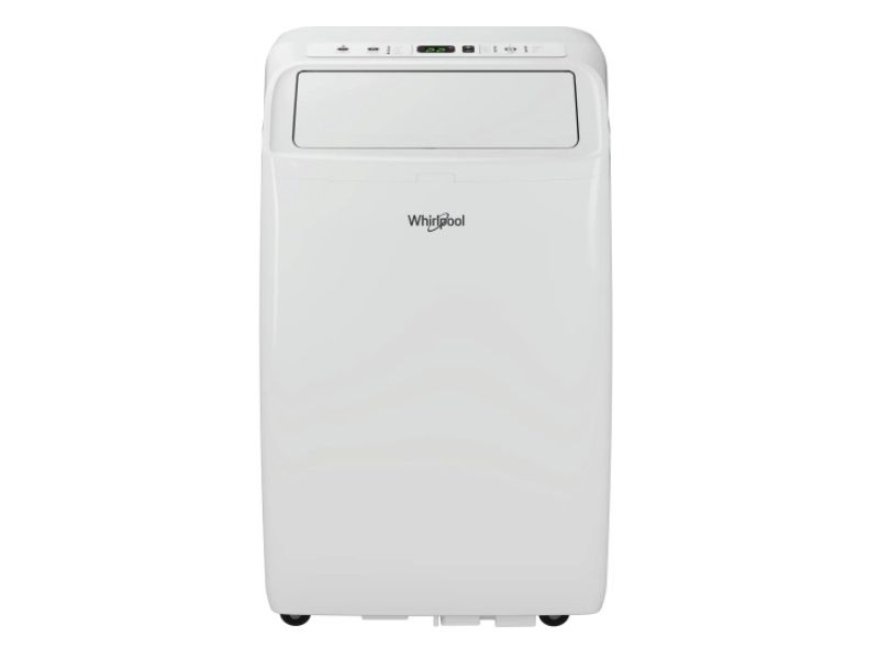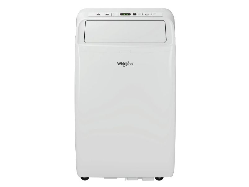 Whirlpool PACF212HP W. Type: Monobloc mobile air conditioner, Air conditioner functions: Cooling, Dehumidifying, Heating, Cooling capacity (max): 12000 BTU/h. Energy efficiency class (cooling): A, Hourly energy consumption (cooling): 3.3 kWh, Energy efficiency class (heating): A+. Product colour: White, Display type: LED. Width: 442 mm, Depth: 373 mm, Height: 718 mm