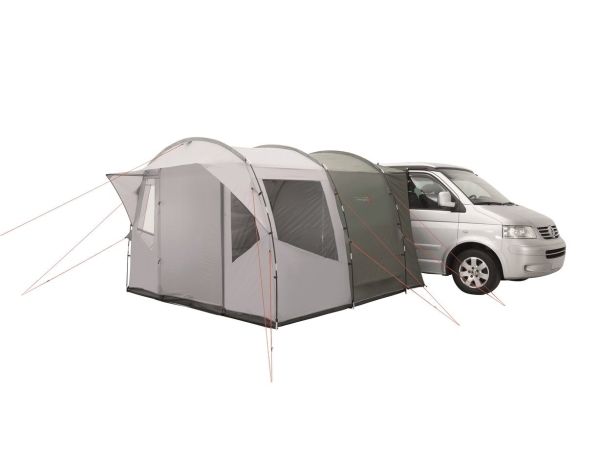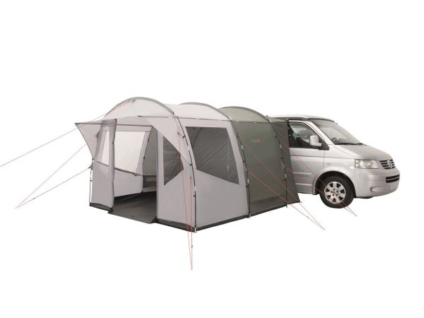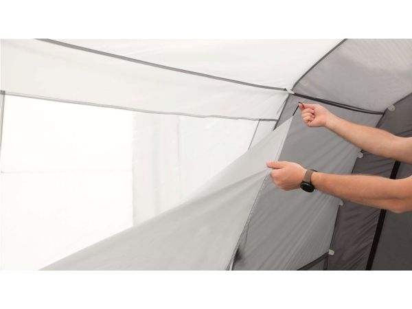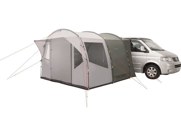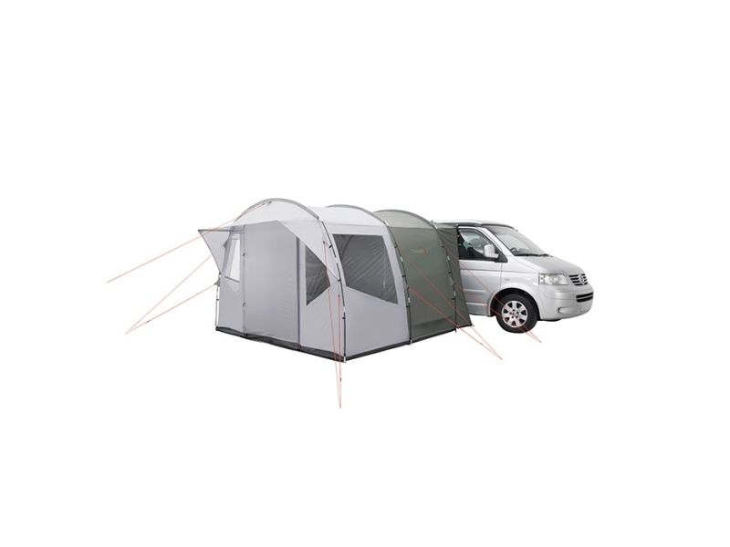 A flexible tunnel design, the large Wimberly drive-away awning has pre-angled fibreglass poles plus exterior fiberglass poles for stability, canopy support and fabric tension. With full standing headroom, curtained windows, a rear double and front door, large air vents plus a full-size toggle-up groundsheet, a two-person optional inner tent fits either side.