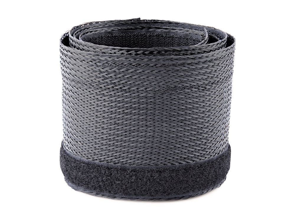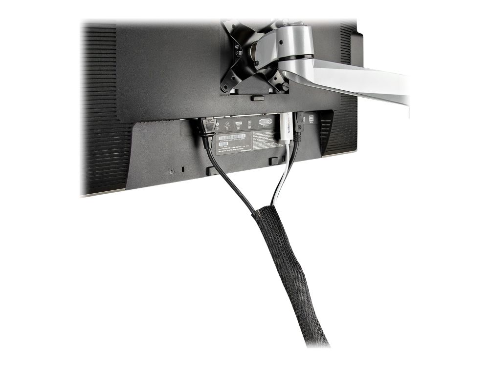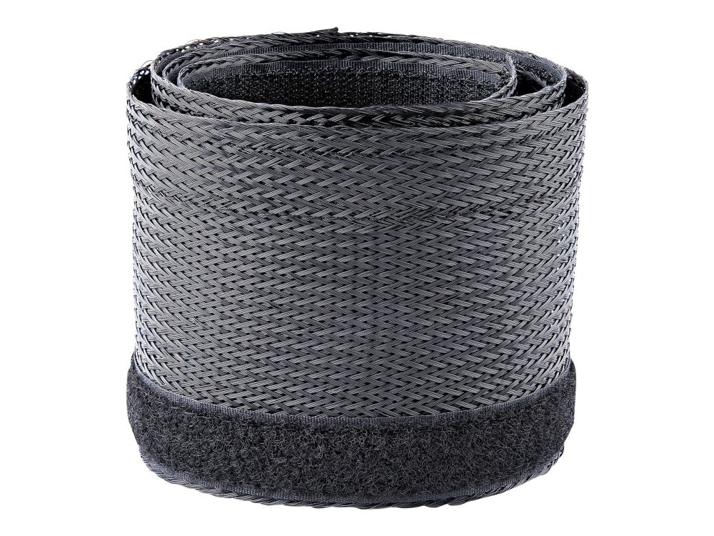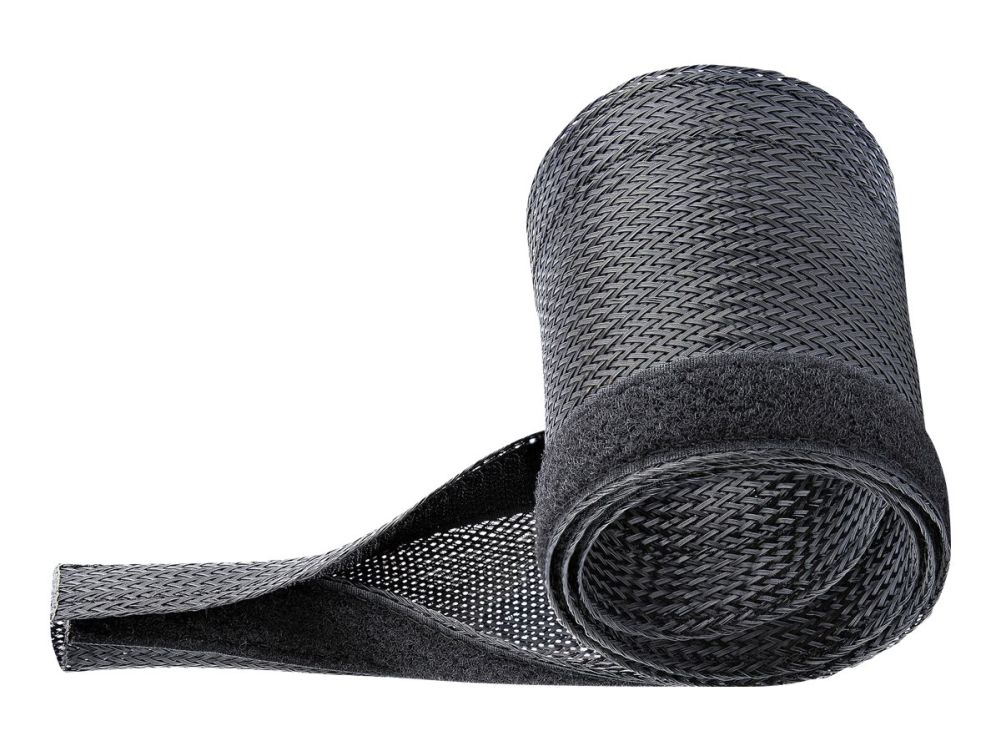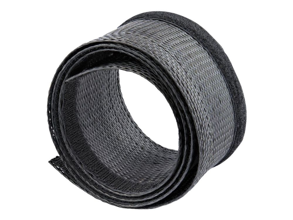 This flexible and lightweight mesh cable management sleeve, made from polyester and woven nylon fabric, provides the solution to cable clutter. Keep cables organized behind your computer monitor, while providing access to cables when needed.