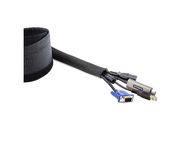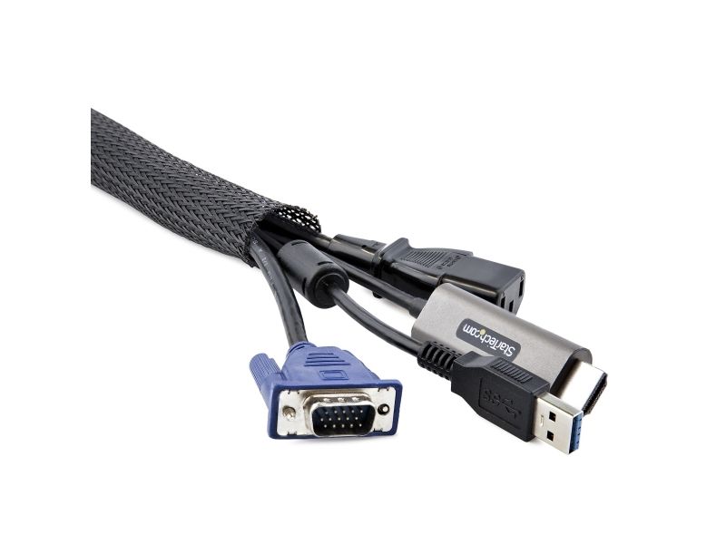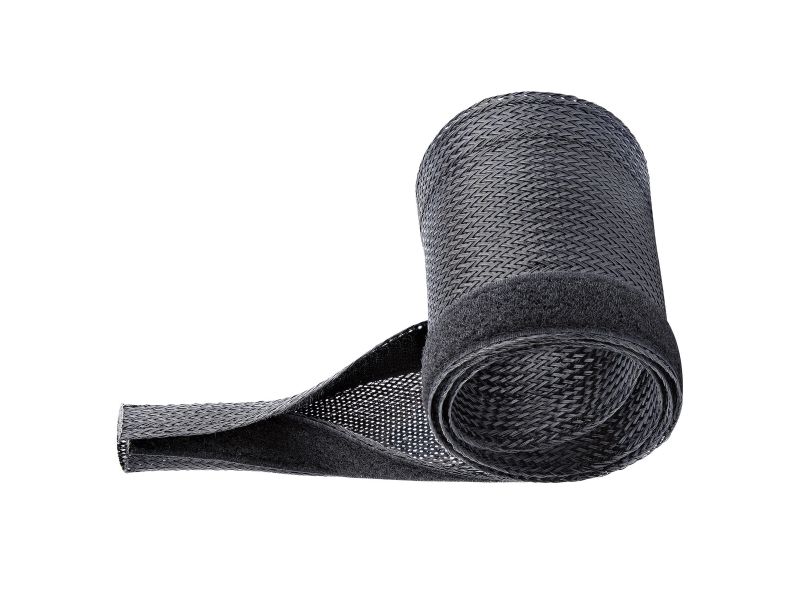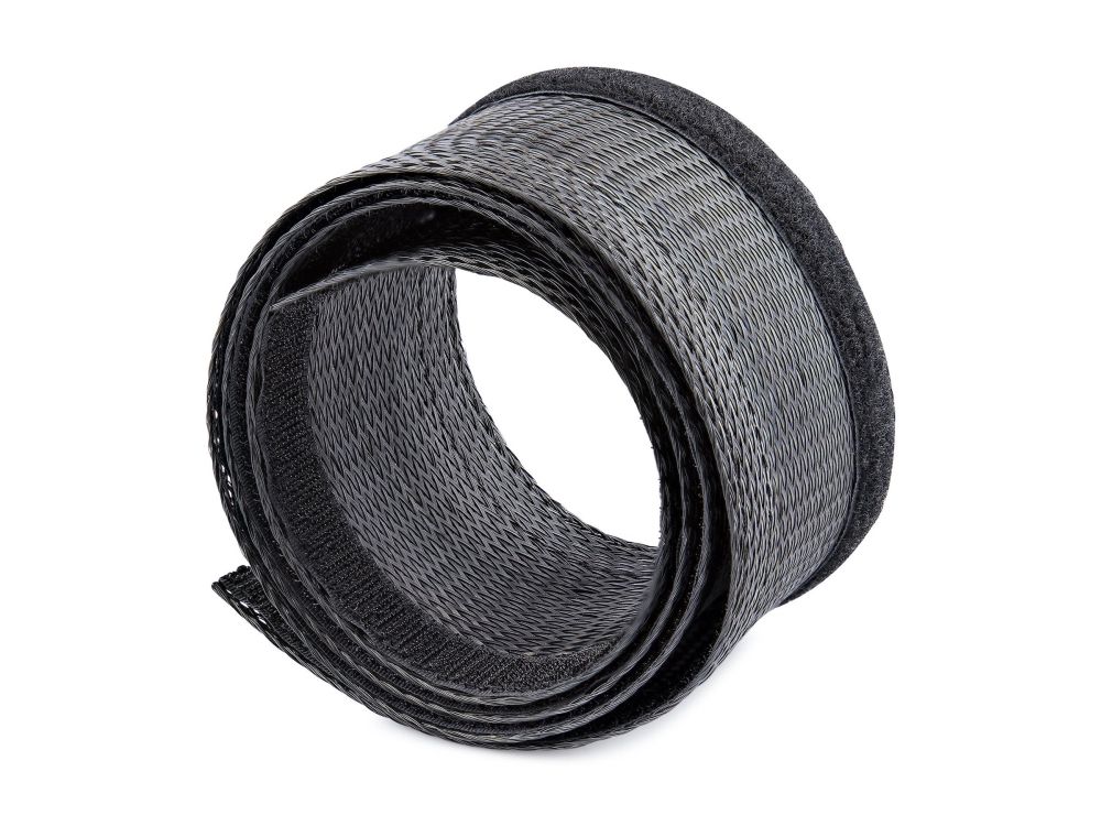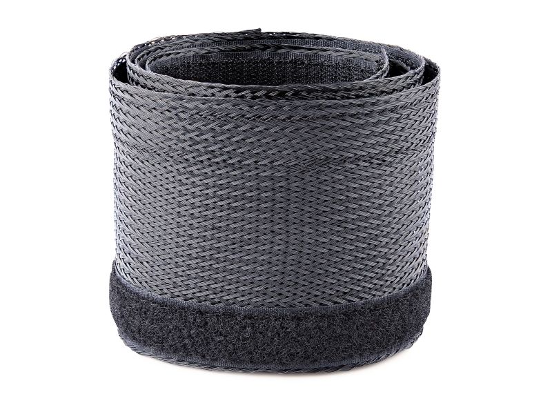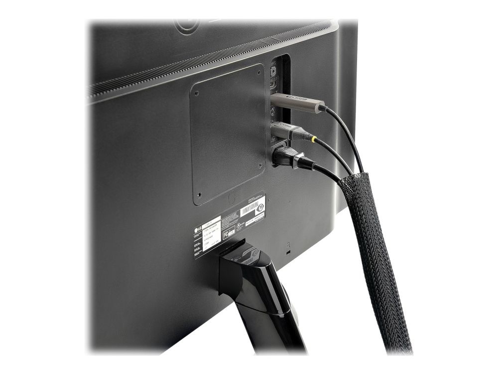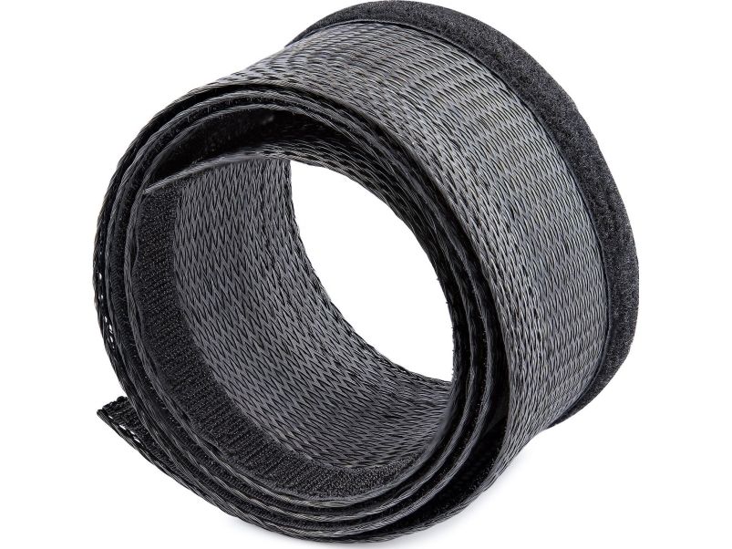 This flexible and lightweight mesh cable management sleeve, made from polyester and woven nylon fabric, provides the solution to cable clutter. Keep cables organized behind your computer monitor, while providing access to cables when needed.