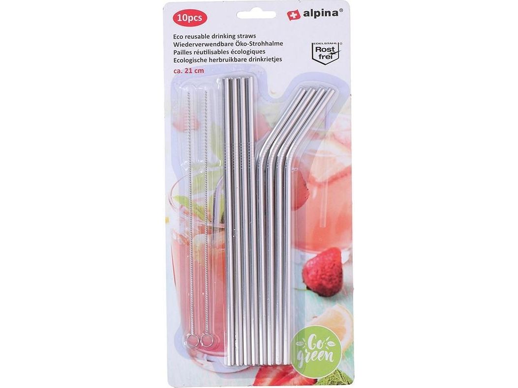Alpina reusable metal straws set with cleaning brushes (8+2 pcs.)