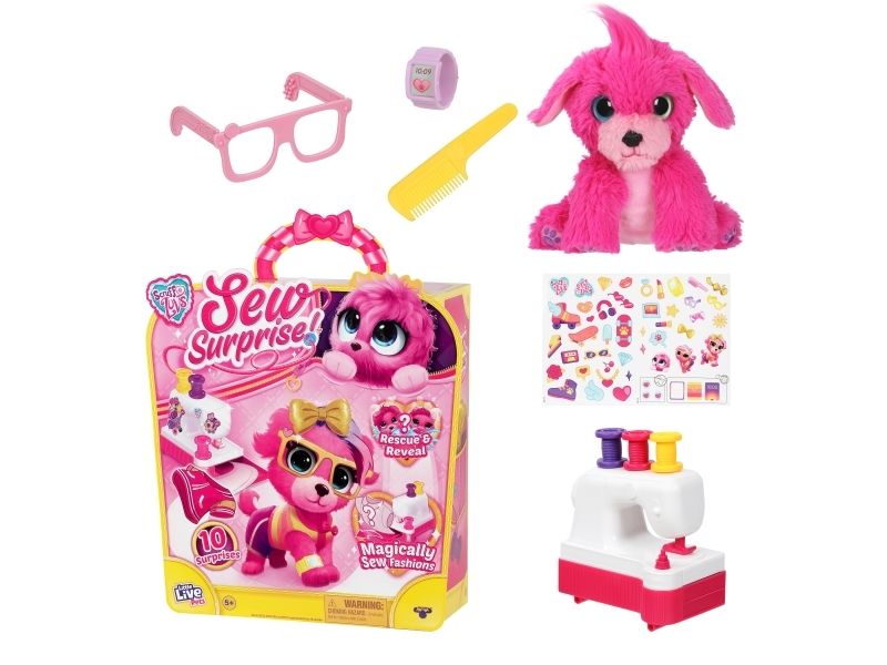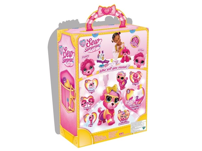 KEY FEATURES •10 Surprises to discover! •Wash to reveal whether you have a cat or a dog! •Magically “sew” and create a fashionable outfit for your pup/ cat using the sewing machine. •Use the spool of thread to discover which clothing item you reveal in the sewing machine. •Style your pet with fashionable accessories like a watch and glasses! •Discover a matching charm for you and your pet to wear. Clr. Pink Age 5+