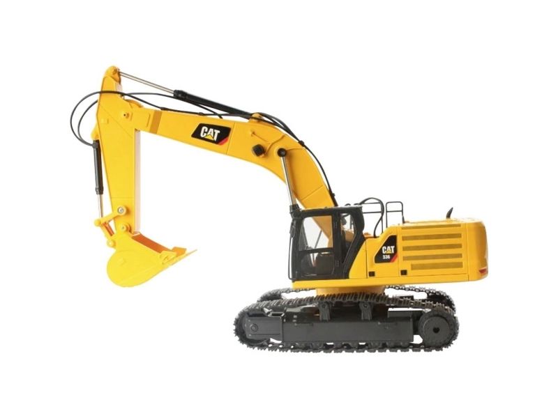Digging for fun on the building site The Carrera RC CAT 336 Excavator moves tons of fun around the building site. Back-and-forth shovel motion, digger-arm swing motion, arm extension and tank-track motion can all be controlled easily for an unbelievably realistic excavation experience. The king of the construction site in his yellow livery with stylish black highlights has been replicated perfectly thanks to an original CAT reproduction license.