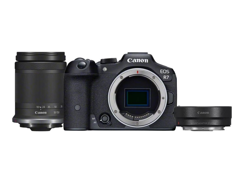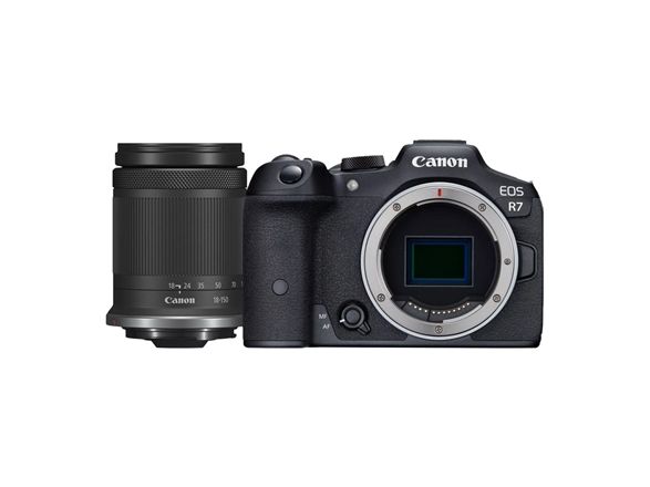 Canon EOS R7 + RF-S 18-150mm IS STM. Camera type: MILC, Megapixel (approx.): 32.5 MP, Sensor type: CMOS, Maximum image resolution: 6960 x 4640 pixels. ISO sensitivity (max): 32000. Focal length range: 18 - 150 mm. Wi-Fi. HD type: 4K Ultra HD, Maximum video resolution: 3840 x 2160 pixels. Display diagonal: 7.49 cm (2.95"), Touchscreen. Viewfinder type: Electronic. PictBridge. Weight: 530 g. Product colour: Black