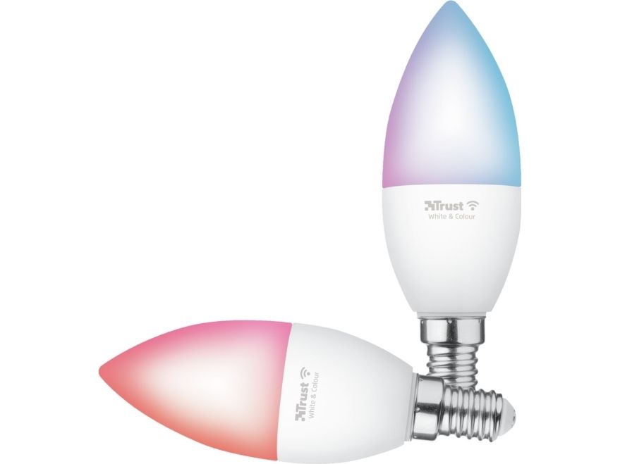Smart WiFi LED Candle E14 White & Colour that can be controlled with your smartphone. Connection via WiFi (2.4GHz), no hub required.Trust 71293. Type: Smart bulb, Interface: Wi-Fi, Product colour: White. Power source type: AC. Width: 37 mm, Depth: 37 mm, Height: 100 mm. Package type: Box. Quantity per pack: 2 pc(s)