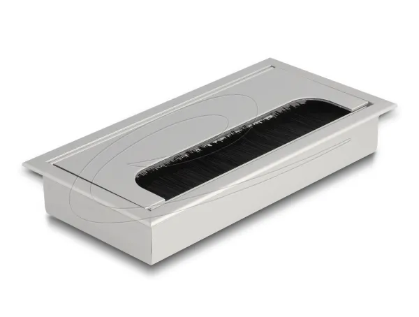 This cable grommet by Delock with brush and hinged cover is ideal for table mounting to pass cables through. The nylon brush prevents dust and dirt from getting in and ensures a safe cable passage.