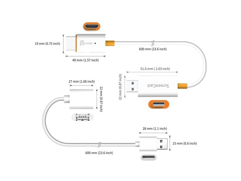 j5create ScreenCast HDMI Wireless Display Adapter Receiver - Mirrors Phone, Tablet, Laptop to HDTV - Compatible with MiraCast, AirPlay, Android, Windows 10 PC, iOS, iPhone, Tablet (JVAW56), USB Type-A, 480p, 720p, 1080p, -10 - 40 °C, -20 - 50 °C, Windows 10, Windows 8.1, Mac OS X 10.15 Catalina, Mac OS X 11.0 Big Sur, Mac OS X 12.0 Monterey