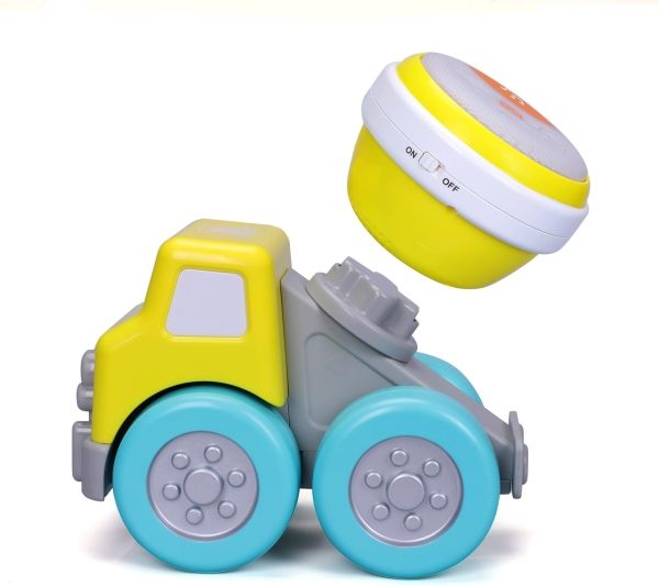 Cement mixer truck with Rock'N Roll drum. This cement mixer truck is part of a travelling band. The truck doubles as fun construction vehicle that sure knows how to Rock 'N Roll with its drum. The drum has 2 play modes: free play or preset melodies. Get ready to Drive 'N Rock. From 12 to 36 months.