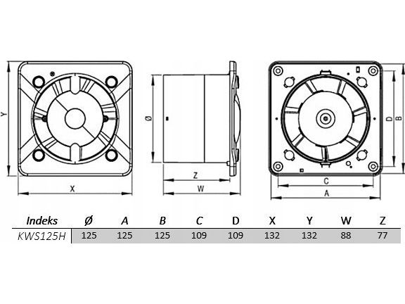 Awenta bathroom fan Trax WTI125H 125mm 150m3/h 18W 230V with humidity sensor and timer switch stainless