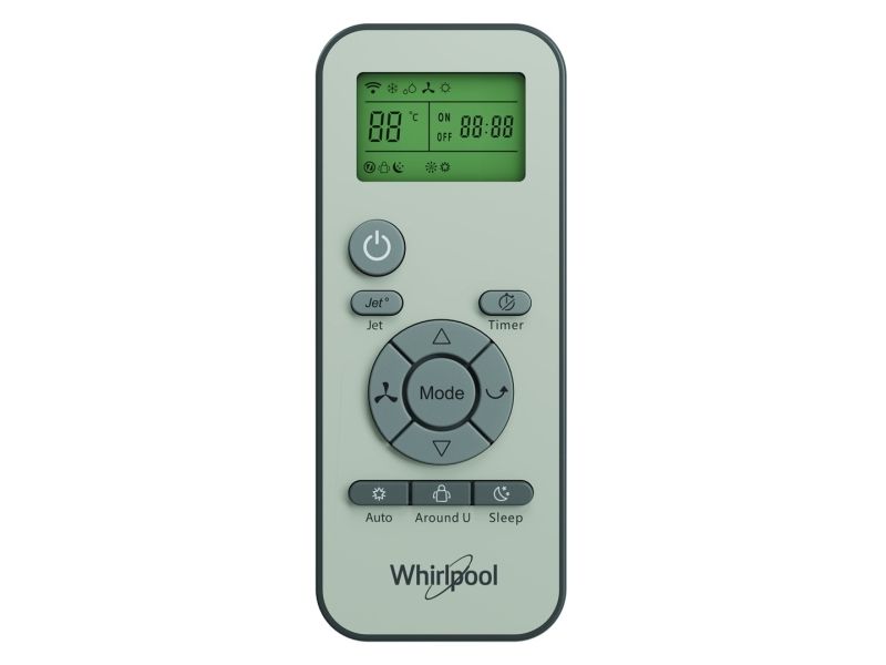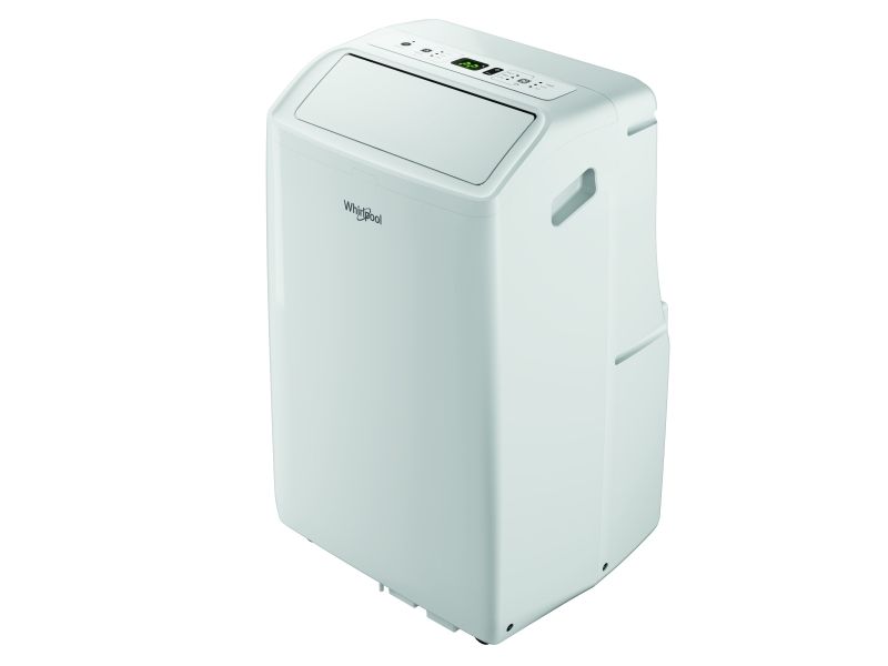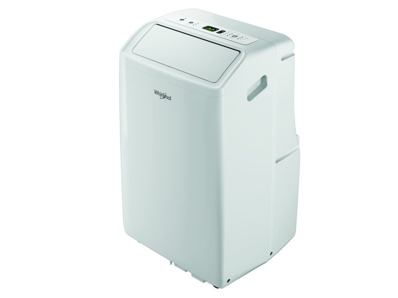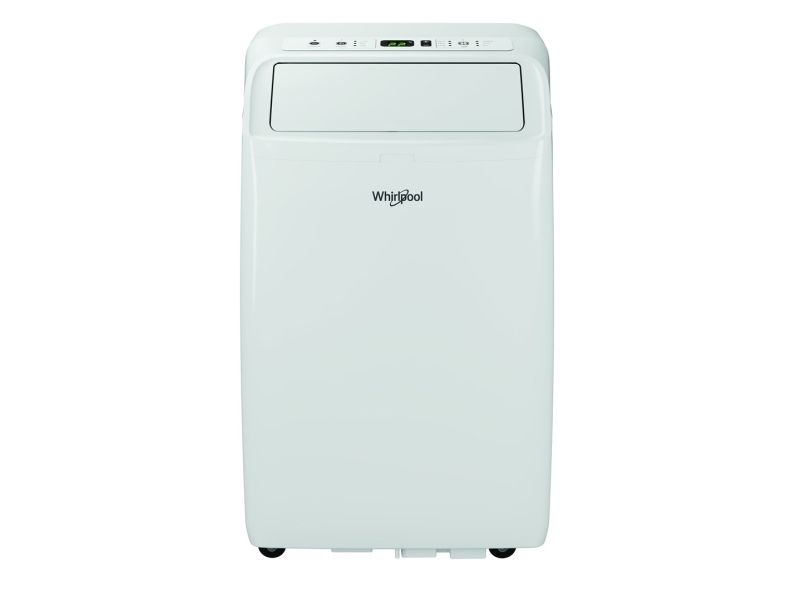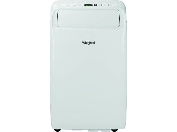 Whirlpool PACF212CO W. Type: Monobloc mobile air conditioner, Air conditioner functions: Cooling, Dehumidifying, Fan, Cooling capacity (max): 12000 BTU/h. Energy efficiency class (cooling): A, Hourly energy consumption (cooling): 1.3 kWh, Energy efficiency scale: A+++ to D. Product colour: White, Control type: Touch. Width: 442 mm, Depth: 373 mm, Height: 718 mm