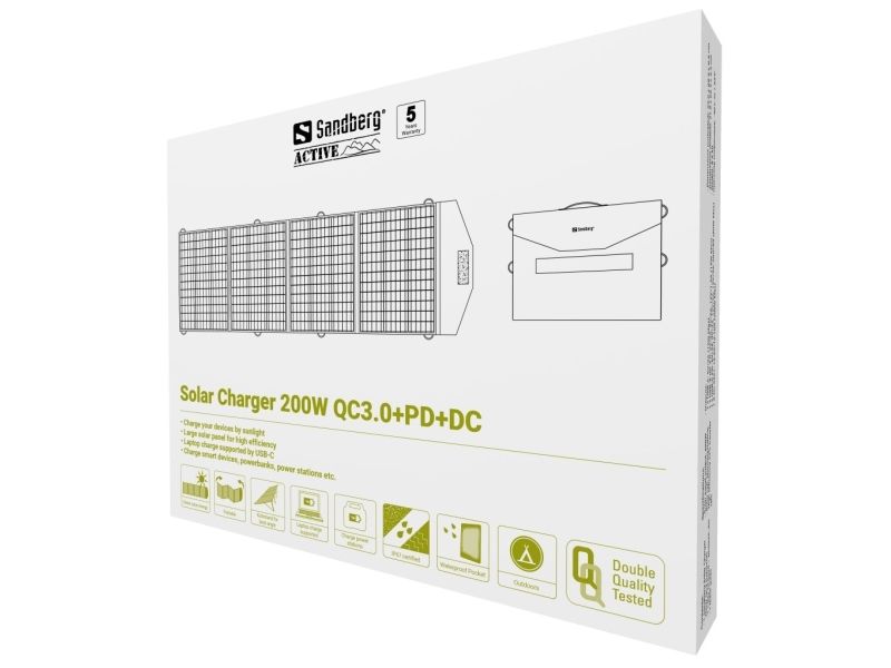 Sandberg Active sollader - QC3.0+PD+DC - 2 x USB, USB-C, power DC jack - 200 Watt
